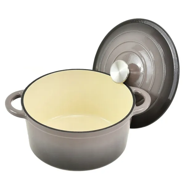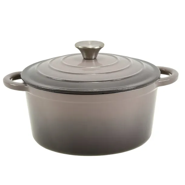 Wyjątkowo solidny garnek żeliwny pokryty powłoką emaliowaną. Doskonale magazynuje i równomiernie rozprowadza ciepło, idealny do gotowania, duszenia i pieczenia.