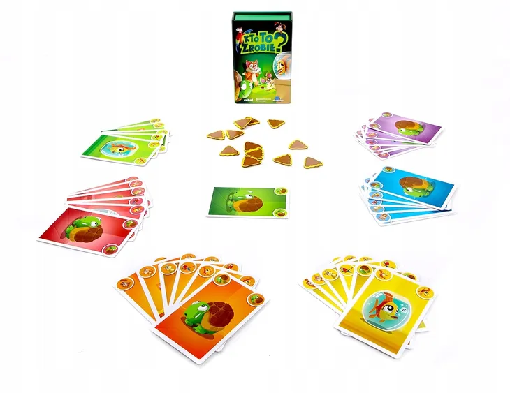 Na nic twe niewinne oczka... „Kto to zrobił?” to dynamiczna i bardzo prosta karcianka, w której liczy się refleks, szybkość reakcji i zapamiętywanie. Cała sprawa dotyczy kupy, którą jakieś zwierzątko zrobiło na środku salonu. Poszukiwania winnego trwają i choć wiesz, że to nie jest sprawka Twojego pupila, jednego możesz być pewien – pozostali gracze z pewnością będą próbowali go obwinić, żeby zrzucić winę ze swoich podopiecznych. To nie kot, to królik! To on! Aby wygrać, musisz udowodnić niewinność 6 swoich zwierzaków, pozbywając się wszystkich swoich kart. Znajdź jak najszybciej kartę zwierzaka identycznego z tą na stole, wyłóż ją, a następnie zrzuć winę na kolejne zwierzątko. Zależy Ci na dobrym imieniu Twoich podopiecznych, dlatego musisz działać szybko, pamiętając jednocześnie, które zwierzaki udowodniły już swoją niewinność. Na koniec każdej rundy właściciel winnego zwierzaka otrzymuje żeton kupy. Osoba, która pod koniec gry będzie miała ich najmniej – wygrywa. Dlaczego pokochasz tę grę? Szybkość, refleks i element pamięciowy, to mieszanka gwarantująca sukces małych karcianek. Z powodzeniem wykorzystują ją największe hity z tej kategorii – „Dobble”, „Cortex” i „Jungle Speed”. Dzięki prostym zasadom i niezależności językowej, „Kto to zrobił?” jest grą niesamowicie uniwersalną, odpowiednią na początek, ale także jako przerywnik między cięższymi tytułami. W „Kto to zrobił?” można grać absolutnie wszędzie – wystarczy mały kawałek płaskiej przestrzeni, na której znajdzie się miejsce na wykładane karty. Świat oszalał na punkcie gry! Nominacja dla W 2019 r. „Kto to zrobił?” zdobył nominację do prestiżowej nagrody Złotego Asa (odpowiednik polskiej Gry Roku) we francuskim Cannes! Zawartość opakowania: • 36 kart (6 zwierzaków w 6 kolorach), • 13 żetonów kupy, • instrukcja.
