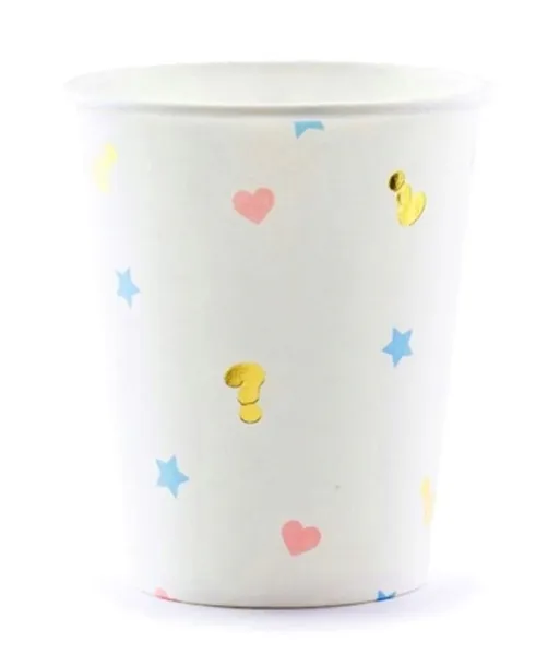 Kubeczki papierowe Boy or Girl, mix kolorów, pojemność ok. 200 ml. Kubki na napoje zawierają oznaczenia wymagane przez Rozporządzenie wykonawcze Komisji (UE) 2020/2151 z dnia 17 grudnia 2020 r. ustanawiające zasady dotyczące zharmonizowanych specyfikacji w odniesieniu do oznakowania produktów jednorazowego użytku z tworzyw sztucznych wymienionych w części D załącznika do dyrektywy Parlamentu Europejskiego i Rady (UE) 2019/904 w sprawie zmniejszenia wpływu niektórych produktów z tworzyw sztucznych na środowisko. Produkt zawiera etykietę wyłącznie w języku polskim, niemieckim, czeskim, francuskim, niderlandzkim, słowackim, słoweńskim i bułgarskim. (1 op. / 6 szt.)