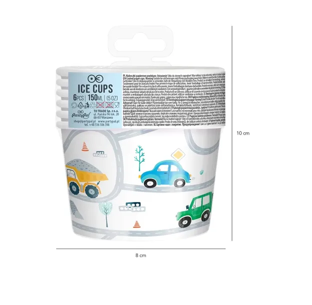 Kubeczki papierowe do lodów PartyPal auta 6x150 ml