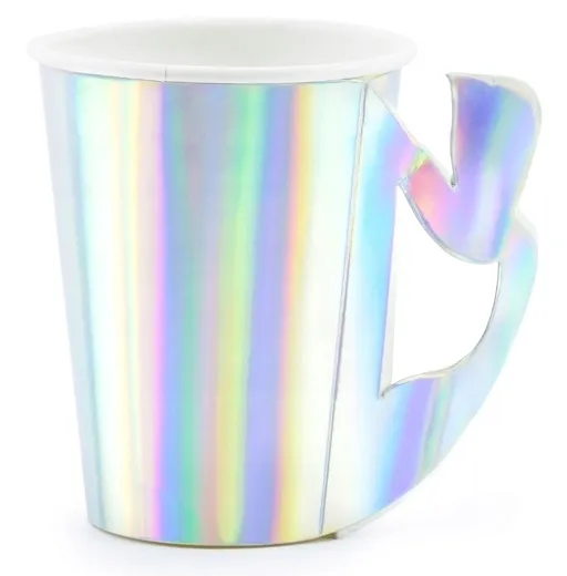 Kubeczki Syrenka wykonane z papieru w kolorze opalizującym z uchem w kształcie ogonka, pojemność ok. 220 ml.