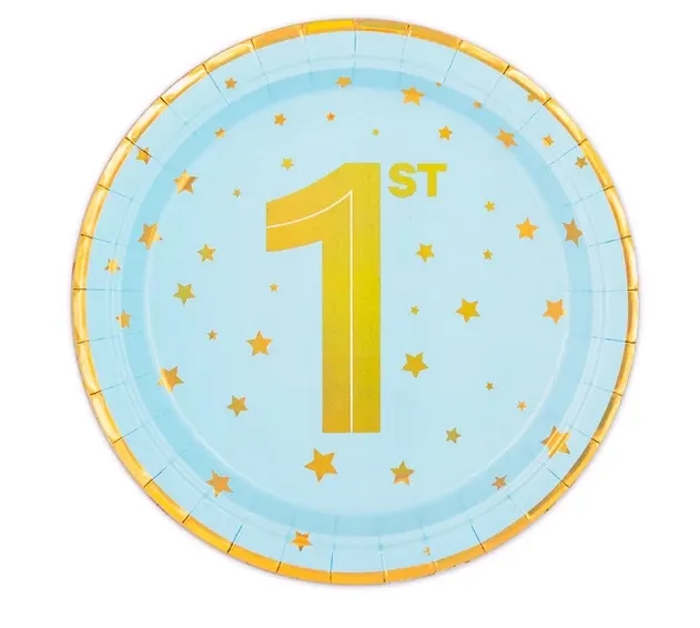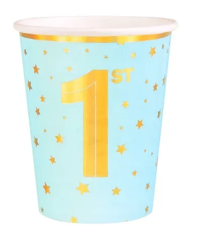 KUBECZKI PAPIEROWE URODZINOWE Roczek niebieskie złote 6szt