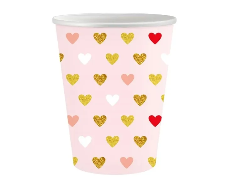Kubeczki Papierowe Walentynki serduszka 250 ml 6 szt.