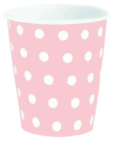 Kubeczki RÓŻOWE w białe KROPKI na urodziny 6szt