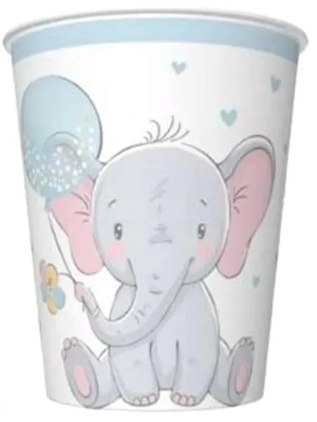 Kubeczki SŁONIK NIEBIESKI papierowe urodziny 6szt