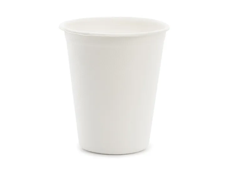 Kubeczki z trzciny cukrowej w kolorze białym, pojemność ok. 250 ml (8.8 oz).