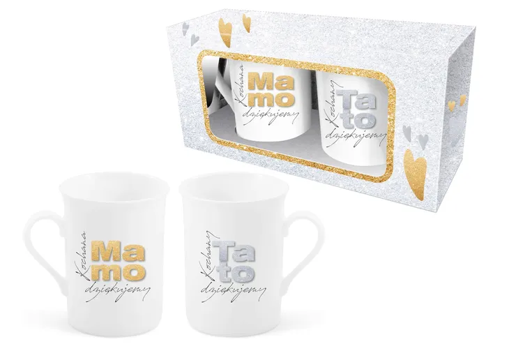 Zestaw 2 kubków porcelanowych dla rodziców ślub podziękowanie (13128)