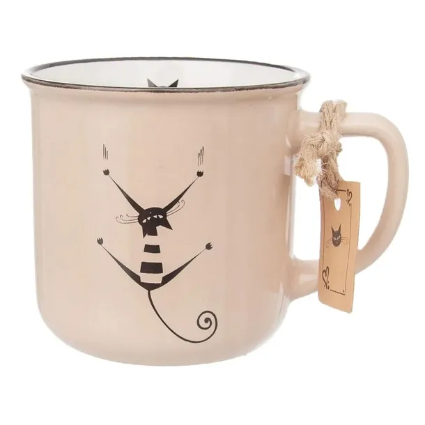 ✅ CERAMICZNY - Kubek wykonany z wysokiej jakości ceramiki w kolorze beżowym a dekor w kolorze czarnym. Wnętrze kubka jest białe.
