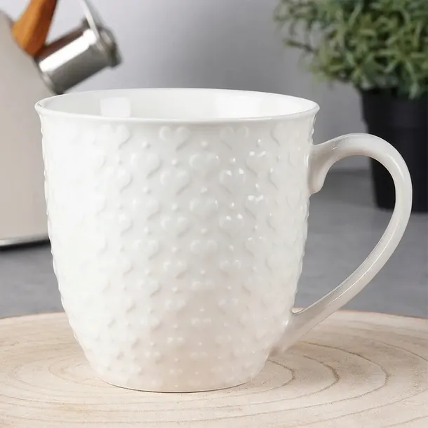 Duży kubek o pojemności 580 ml. Idealny dla miłośników dużej porcji kawy lub herbaty. Świetnie sprawdzi się również na inne napoje. Posiada efektowny dekor w postaci nakrapianych serduszek. Kubek jest zawsze świetnym pomysłem na prezentem. Oryginalny produkt czeskiej marki Orion. Wyprodukowano zgodnie z europejskimi standardami.