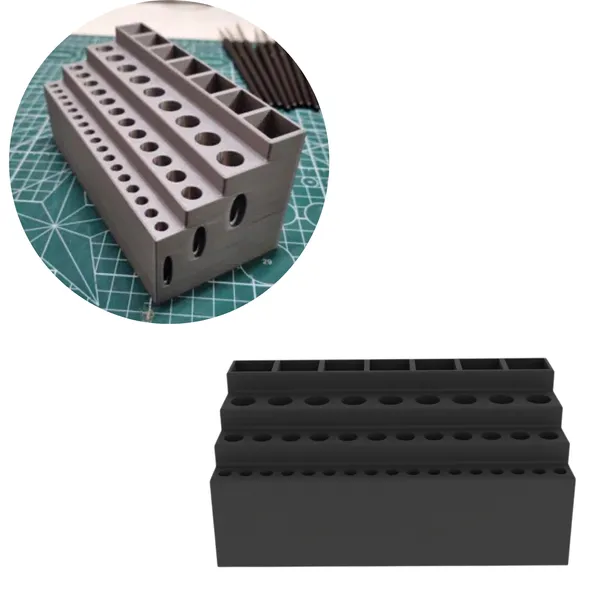 Do przechowywania i porządkowania pędzelków, pisaków i narzędzi modelarskich. Różne średnice otworów oraz górne przegrody trzymają wszystko w jednym miejscu i chronią włosie przed odkształceniem.