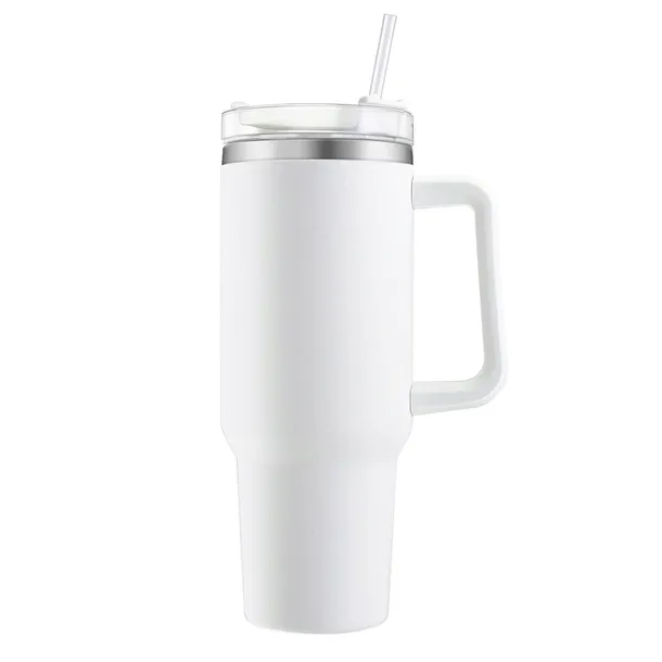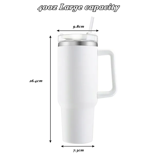 40oz Podwójnie izolowany kubek ze stali nierdzewnej, 1200ml kubek z uchwytem i słomką, izolowany kubek do kawy, kubek samochodowy, kubek podróżny, termos do zimnych i gorących napojów (Biały)