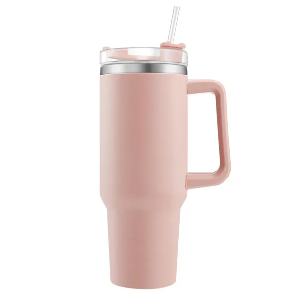 40oz Podwójnie izolowany kubek ze stali nierdzewnej, 1200ml Tumbler z uchwytem, słomką, izolowany kubek do kawy, kubek samochodowy, kubek podróżny, termos do zimnych i gorących napojów, różowy