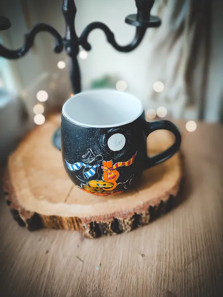 Duży kubek w scenerii nocnych kotów