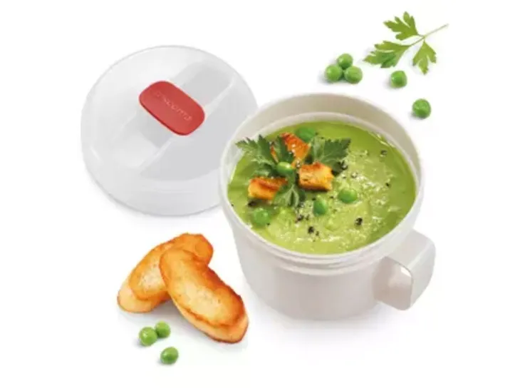 - Doskonały do przenoszenia zupy do miejsca pracy, podgrzewania jej w kuchence mikrofalowej oraz serwowania.