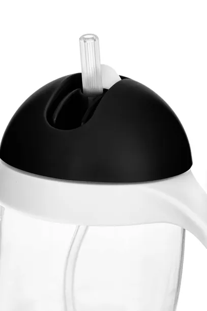 Bidon z silikonową słomką zakończoną odważnikiem umożliwia picie pod każdym kątem. Całkowicie wolny od bisfenolu A (0% BPA). Dziecko pije do ostatniej kropelki. Twój maluszek może pić przechylając kubek nawet do góry nogami.
