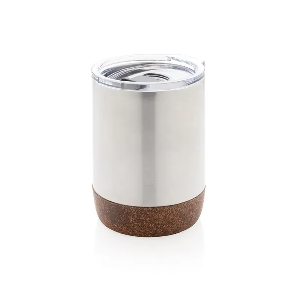 Korkowy kubek termiczny 180 ml, podwójne ścianki ze stali nierdzewnej z próżnią między ściankami, wewnątrz stal nierdzewna 304, na zewnątrz stal nierdzewna 201, utrzymuje napoje ciepłe do 5 godzin oraz zimne do 15 godzin, korkowa podstawa, pasuje do większości ekspresów do kawy, klasa termiczna: A