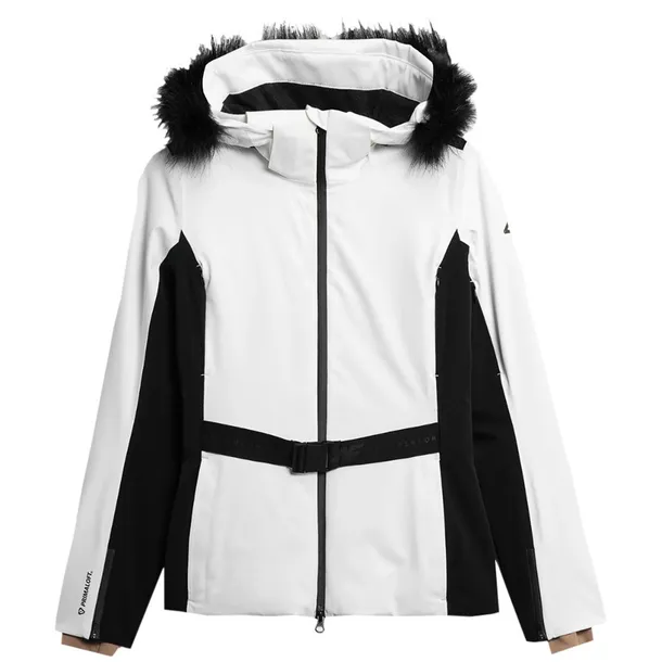 Damska kurtka narciarska 4FPRO z membraną DERMIZAX® 20 000. Zaprojektowaliśmy ją dla profesjonalistów poszukujących maksymalnej ochrony podczas zimowych aktywności.Założysz go wszędzie tam, gdzie wymagana jest bardzo dobra izolacja przed zimnem, wiatrem i śniegiem.Wyjątkowo wytrzymały, wysoce funkcjonalny materiał japońskiej firmy Toray® wyposażony w membranę Dermizax® 20 000/10 000 zapewniającą ochronę przed ulewnym deszczem lub śniegiem. Pikowane panele z ociepleniem poliestrowym zapewniają wysoki komfort cieplny.Tył podszyty jest panelem siatkowym w kolorze czarno-srebrnym, który wraz z poliestrowym ociepleniem zapewnia odpowiednią izolację termiczną i pozwala zachować optymalny stosunek ciepła do wagi.Regulowany kaptur, przedłużone elastyczne mankiety i pas śnieżny ochronią Cię przed zimnem. Damska kurtka narciarska 4FPRO membrana DERMIZAX® 20 000 - CECHY:system wentylacji pod pachami zapinany na zamek kryty pod klapą,materiał Toray® z membraną Dermizax® 20 000/10 000 zapewnia ochronę przed ulewnym deszczem lub śniegiem,mankiety regulowane za pomocą zamka błyskawicznego, a dół regulowany elastycznym ściągaczem ze stoperem,odpinany, antypoślizgowy pas śniegowy zapinany na zatrzaski zapobiega wnikaniu zimna i śniegu,wewnętrzne, przedłużone mankiety z otworami na kciuki zapewniają dobre dopasowanie i ochronę przed zimnem,wewnętrzna strona podszyta oddychającą siatką oraz panel termoizolacyjny z czarnej siateczki na plecach zapewniają odpowiednią termoregulację podczas aktywności,pikowane panele z ociepleniem dla większego komfortu cieplnego,wodoodporny zamek główny YKK chroniony wewnętrzną wiatroszczelną plisą z listwą ochronną chroniącą podbródek przed nadmierną utratą ciepła,wodoodporne szwy i zamki zapewniają ochronę przed przenikaniem wilgoci,odpinany kaptur z odpinanym sztucznym futerkiem i regulacją,elastyczny pasek z klamrą dla lepszego dopasowania,silikonowe wypustki na ramionach ułatwiają przenoszenie nart,2 kieszenie wewnętrzne: 1 otwarta z siatki na okulary + 1 zapinana na zamek z otworem na słuchawki,4 zewnętrzne kieszenie zapinane na zamek: 2 boczne ocieplane miękkim trykotem i 2 piersiowe. PARAMETRY:Błona: Dermizax 20 000Wodoodporność: 20 000 mm H2OOddychalność: 10 000 g/m2/24hWysoki stopień ochrony przed ulewnym deszczem lub śniegiem.Optymalne odprowadzanie wilgoci podczas aktywności o dużej intensywnościProdukt przeznaczony na chłodniejsze dniSZCZEGÓŁOWE INFORMACJE O DAMSKIEJ KURTCE NARCIARSKIEJ MEMBRANA 4FPRO DERMIZAX® 20 000Główny materiał: Poliamid 84%, Elastan 16%Sezon: Jesień-Zima 2022Linia: KAWA LODOWAWłaściwości: Ochrona przed zimąSport: Sporty zimoweIzolacja: Ocieplina syntetycznaFunkcjonalność kurtki: Kieszeń na Ski PassKaptur: odpinanySymbol produktu: H4Z22-KUDN012-10SWodoodporność: 20 000 mmOddychalność: 10 000 gDermizaxDermizax™ to laminat z membraną zapewniającą najwyższy poziom wodoodporności i oddychalności. Laminat stretch wykorzystuje elastyczność tkaniny i nadaje jej lekkość i elastyczność. Jest to idealny materiał do uprawiania sportów w trudnych warunkach, m.in. wspinaczki górskiej, sportów outdoorowych i zimowych.Idealny materiał dla osób bardzo aktywnych:Wyjątkowo wysoka wodoodporność niezależnie od intensywności aktywności.Wyjątkowa oddychalność, dzięki bardzo efektywnej strukturze membranyBardzo trwała, elastyczna, nieporowata membranaMiękkie i ciche w dotykuZwiększone właściwości hydrofoboweToray nowyJeden z największych na świecie koncernów branży tekstylno-tworzywowej. Jakość tkaniny jest zawsze najwyższa dzięki unikalnej technologii produkcji i rygorystycznej kontroli jakości.Klejone szwyProdukty ze wszystkimi podklejonymi szwami są z reguły wodoodporne.