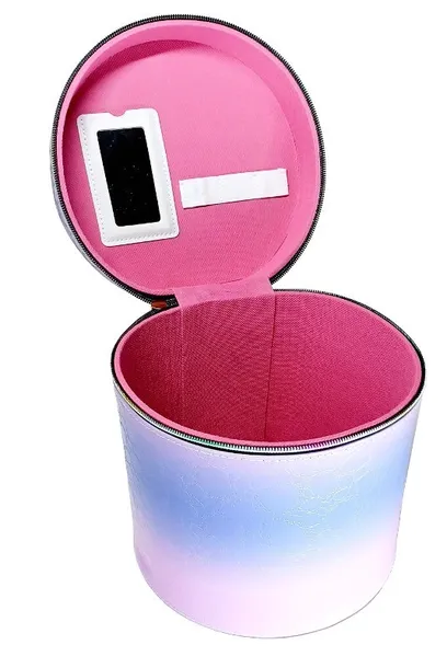 Kuferek z rączką to idealny gadżet dla każdej modnisi. Wykonany jest z bardzo dobrej jakości materiałów z dbałością o każdy szczegół. Produkt zapinany jest na suwak odznaczający się kolorowym wzorem graficznym. Po jego otwarciu będziemy mieli dostępną przestrzeń do przechowywania wybranych drobiazgów lub produktów do makijażu, które posiadamy w domu. Wewnątrz kuferka, na wieczku znajduje się lusterko, w którym można przejrzeć swój makijaż. Kuferek posiada usztywnioną konstrukcję, dzięki czemu wszystkie drobiazgi pozostają bezpieczne. Wyprofilowana rączka usytuowana na górze produktu ułatwia transport, jak i przenoszenie. Co więcej, kuferek spełnia funkcję kosmetyczki podróżnej, dlatego sprawdzi się w każdej podróży. Wymiary kuferka: 20x20x20cm