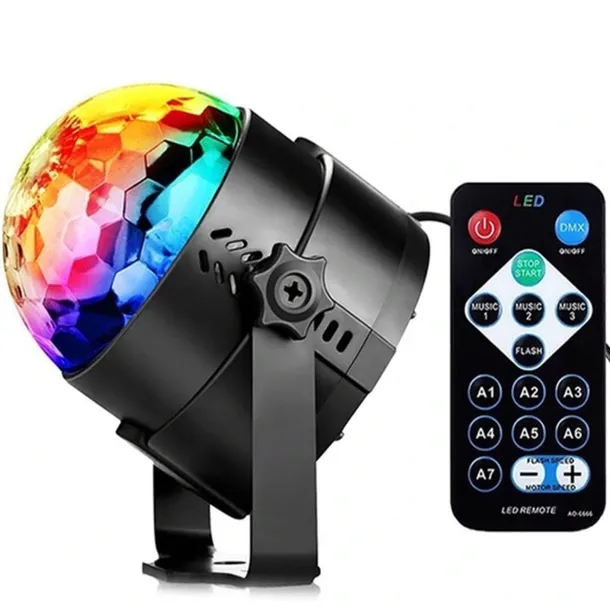 KULA DISCO PROJEKTOR DYSKOTEKOWY REFLEKTOR KOLOROWY RGB LED LASER Z PILOTEM