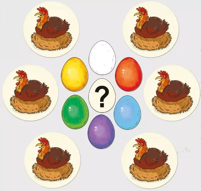 Bądź sprytniejszy niż kury! Zadaniem graczy jest zdobycie jak największej liczby jajek. Aby je zdobyć, należy znaleźć kury wysiadujące jajka w odpowiednich kolorach. Nie będzie to jednak łatwe, ponieważ wszystkie kury w kurniku wyglądają jednakowo i często zmienia¬ją gniazda, w których wysiadują jajka! Gra posiada proste zasady gry! Будьте розумніші за курей! Завдання гравців – зібрати якомога більше яєць. Щоб їх отримати, потрібно знайти курей, які несуть яйця потрібних кольорів. Але це буде непросто, тому що всі кури в курнику виглядають однаково і часто міняють гнізда, де вони висиджують яйця.