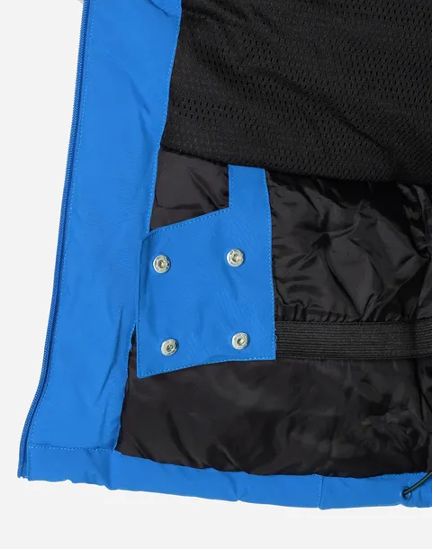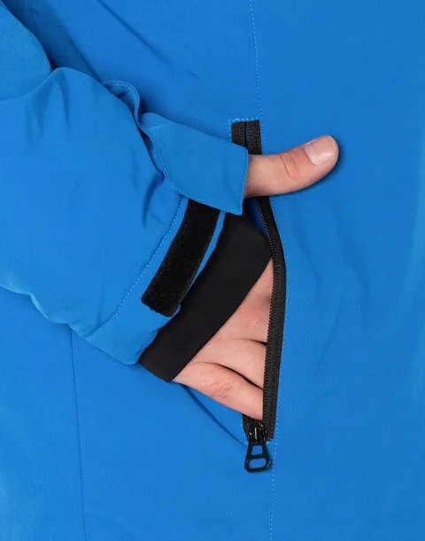 - Dwie zasuwane na kryte wodoodporne zamki kieszenie na SKIPASS na lewym i prawym rękawie kurtki
