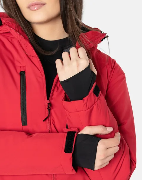 - Zasuwana na kryty wodoodporny zamek kieszonka na SKIPASS na lewym rękawie kurtki