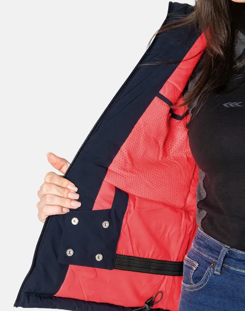 - Dół kurtki regulowany ściągaczem ze stoperami zapewnia indywidualne dopasowanie