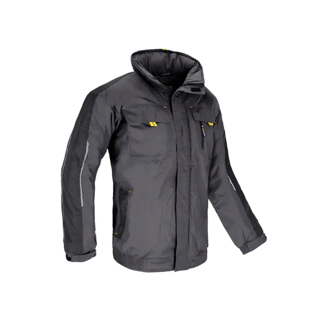Kurtka ocieplana z poliestrową podszewką oraz warstwą zewnętrzną wykonaną w 100% z impregnowanego poliestru.