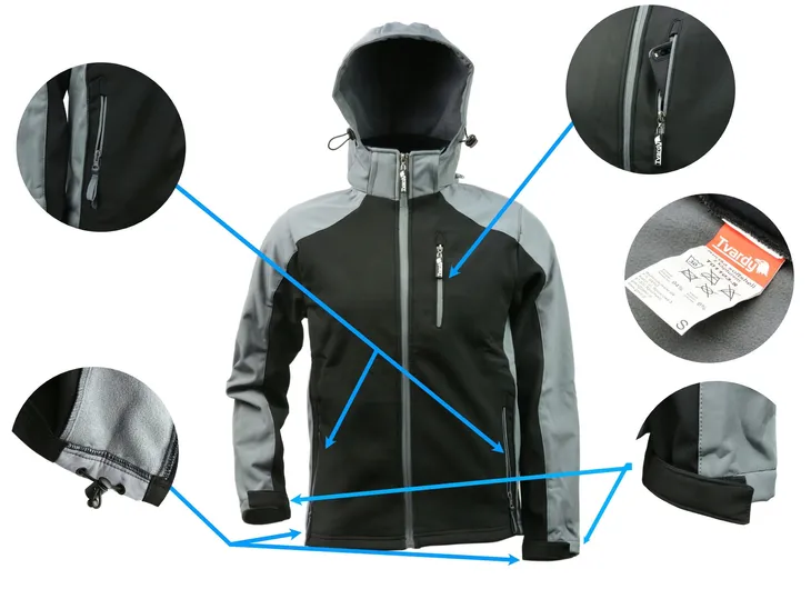 Kurtka Softshell TVARDY z kapturem to nowoczesna, elastyczna i wygodna kurtka z podszewką z micropolaru, zapinana na zamek błyskawiczny. Tkanina typu softshell wykonana z 96% poliestru 100D z dodatkiem 6% elastanu.