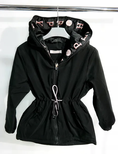 Kurtka jesienno zimowa parka dla dziewczynki w kolorze czarnym.
