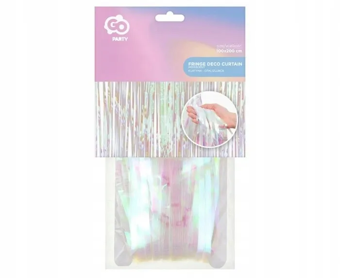 Kurtyna opalizująca, 100x200 cm Wymiary: 100 x 200 Kolor: opalizujący biały Materiał: folia Ilość sztuk w opakowaniu: 1 Producent: Godan S.A. Kurtyna dekoracyjna wykonana z cienkich paseczków. Idealnie sprawdzi się jako ozdoba na wszelkich imprezach lub jako ciekawe tło do zdjęć.