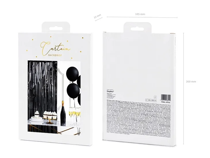 Kurtyna Party w kolorze czarnym, szerokość ok. 90 cm, wysokość ok. 250 cm.