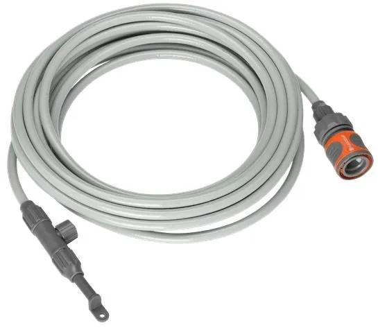 Zestaw kurtyny wodnej GARDENA pozwala się ochłodzić w upalne dni. System obejmujący dysze zamgławiające montuje się na parasolu, daszku lub pergoli i podłącza do kranu. Dysze tworzą delikatną mgiełkę, która przyjemnie schładza powietrze. Zestaw obejmuje 10 m węża, 7 dysz zamgławiających, 1 zawór regulacyjny, 13 obejm mocujących oraz element podłączeniowy OGS. Zestaw kurtyny wodnej zapewnia odświeżenie w gorące dni, obniżając temperaturę nawet o 6°C. Rozpylana mgiełka wodna unosi się w powietrzu niczym chłodna zasłona. Jest gotowy do natychmiastowego użycia, a ponadto można go rozszerzać o dodatkowe zestawy. Wydatek wody 13 l/h.