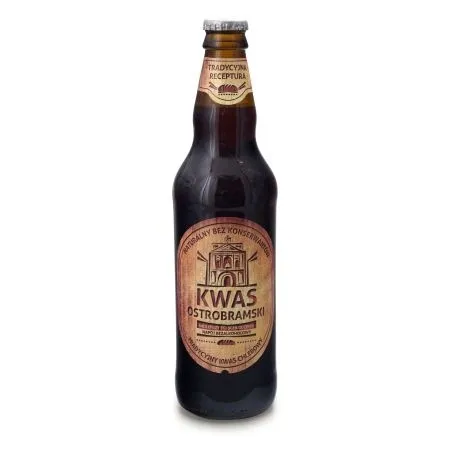 Kwas chlebowy ostrobramski to naturalny napój bezalkoholowy nie zawierający dodatku substancji konserwujących, który powstał w wyniku fermentacji chleba. Wyprodukowany został z naturalnych surowców. Odkryj jego oryginalny smak okraszony delikatną nutą kwaskowości i goryczy. Ostrobramski kwas chlebowy dzięki połączeniu drożdży, żyta i słodu jęczmiennego znakomicie orzeźwia, jednocześnie doskonale gasząc pragnienie - to doskonały wybór w trakcie upalnych dni. Mogą go pić zarówno dorośli, jak również młodzież i dzieci. Zawiera korzystne bakterie kwasu mlekowego.