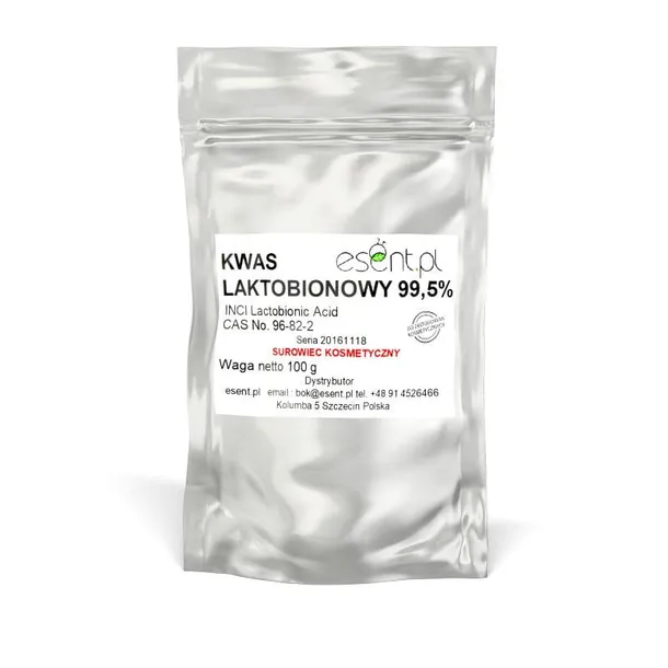 Kwas Laktobionowy jest polihydroksykwasem (PHA) należącym do grupy kwasów hydroksylowych. Jest pozyskiwany z naturalnej laktozy i występuje w postaci proszku lub pudru złożonego z bardzo drobnych kryształków. Charakteryzuje się dobrą rozpuszczalnością w wodzie. Stanowi cenny surowiec do zastosowań w formulacjach kosmetycznych, oferując unikalne właściwości pielęgnacyjne.