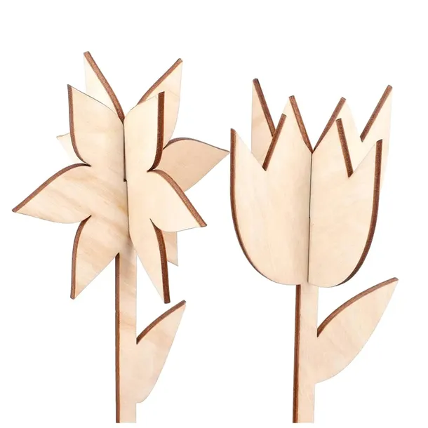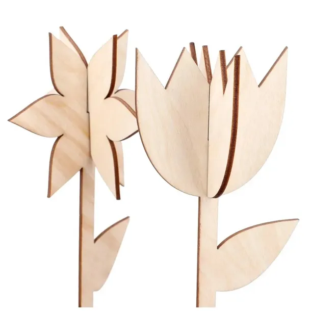 - Kwiaty dekoracyjne wykonane w całości ze sklejki.