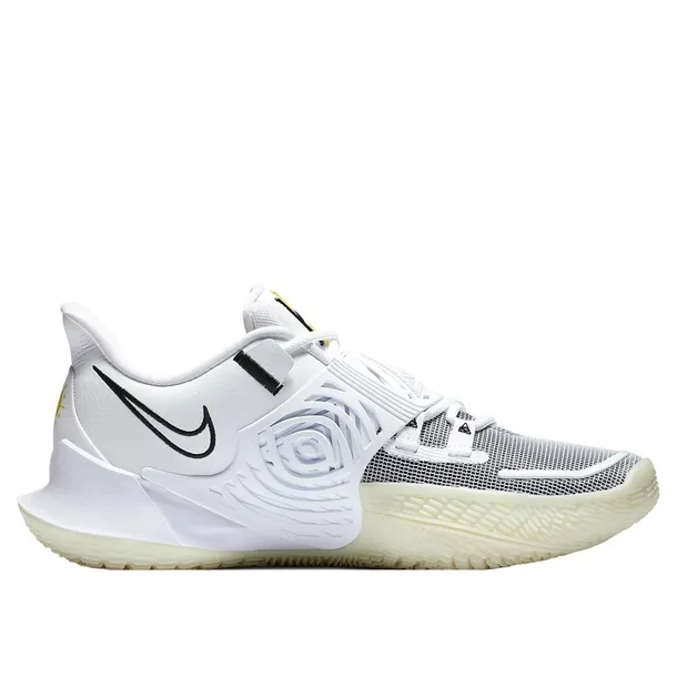 Podczas całkowitego zaćmienia słońca światło dnia i ciemność nocy stają się jednością. Buty Kyrie Low 3 „Eclipse” symbolizują równowagę między przeciwieństwami za pomocą skomplikowanych wzorów w obszarze palców i na pasku oraz żółtego godła na pięcie.Dynamiczna amortyzacja AirAmortyzacja Zoom Air w przedniej części buta i pod piętą spręża się pod wpływem nacisku, a następnie rozpręża się, zwracając włożoną energię podczas gry.Zapięcie na pasek, bezpieczne dopasowanieProfilowany, elastyczny pasek w obszarze śródstopia otacza sznurowadła, zapewniając dokładne dopasowanie.Przyczepność na brzegachGumowa podeszwa zewnętrzna zawija się na boki, zapewniając dodatkową przyczepność.Więcej zalet Siateczka w przedniej części buta jest lekka i przewiewna. Wyprofilowana podeszwa środkowa z pianki umożliwia płynne przetaczanie stopy i nadaje aerodynamiczny wygląd.Szczegóły produktu Wytrzymała podeszwa zewnętrzna z gumy. Cholewka wykonana ze skóry naturalnej i syntetycznej oraz z materiału. Produkt nie jest przeznaczony do stosowania jako odzież ochronna. Prezentowany kolor: Biel/Czerń Styl: CJ1286-100Trzeci model o niskim profilu KyriegoKyrie Irving jest mistrzem wykonywania nagłych zwrotów z piłką. Buty Kyrie Low 3 zapewniają przyczepność w wielu kierunkach i umożliwiają zwinnym zawodnikom wykonywanie szybkich zwrotów bez utraty amortyzacji. Ten model o niskim profilu ma agresywny gumowy bieżnik nachodzący na boki buta oraz pasek w obszarze śródstopia zapewniający uczucie bezpieczeństwa na boisku.
