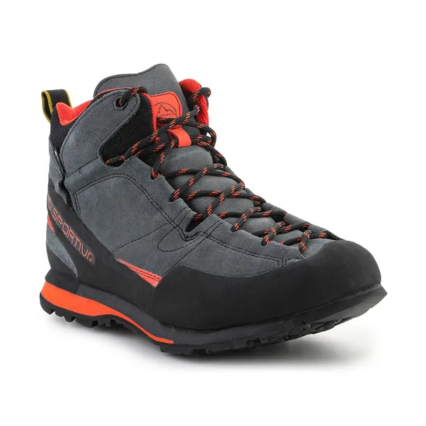 Buty La Sportiva Boulder X Mid GTX 17E900304 w kolorze Carbon Flame są idealnym rozwiązaniem dla entuzjastów wspinaczki i górskiego trekkingu. Wyposażone w membranę Gore-Tex, zapewniają niezawodną ochronę przed wodą i doskonałą oddychalność. Środkowa konstrukcja zapewnia dodatkową ochronę kostki, a wytrzymała podeszwa Vibram z systemem Impact Brake oferuje wyjątkową przyczepność nawet na stromych i technicznych ścieżkach. Wzmocniony gumowy otok chroni buty przed uszkodzeniami mechanicznymi, a precyzyjne dopasowanie sprawia, że są idealne na długie, wymagające wędrówki.