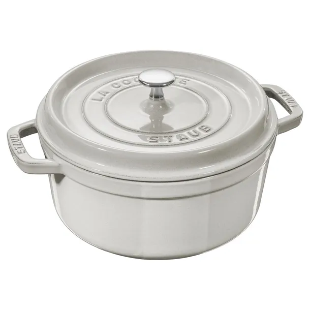Idealne naczynie do duszenia potraw. Dzięki specjalnej pokrywce potrawa jest doskonale nawilżona. Garnek żeliwny Staub ma również inne zastosowania – można w nim gotować, smażyć, a nawet piec w wysokich temperaturach. Duże wygodne uchwyty po obu stronach garnka oraz duża gałka pokrywki umożliwiają mocny chwyt nawet w rękawicach kuchennych. Garnki żeliwne można stosować na wszystkich źródłach ciepła, również na kuchni indukcyjnej. Wewnętrzna powłoka non – stick uniemożliwia przywieranie potraw. Zewnętrzna kolorowa emalia zapewnia trwałość i łatwość czyszczenia naczynia, a także nadaje naczyniu niepowtarzalny wygląd. Pięknie prezentuje się na stole podczas serwowania potraw. WYMIARY Średnica: 18 cm Średnica dna: 14.9 cm Wysokość (bez pokrywki): 8.3 cm Wysokość: 13.5 cm Długość: 24 cm Pojemność: 1.7 ltr Masa: 2.