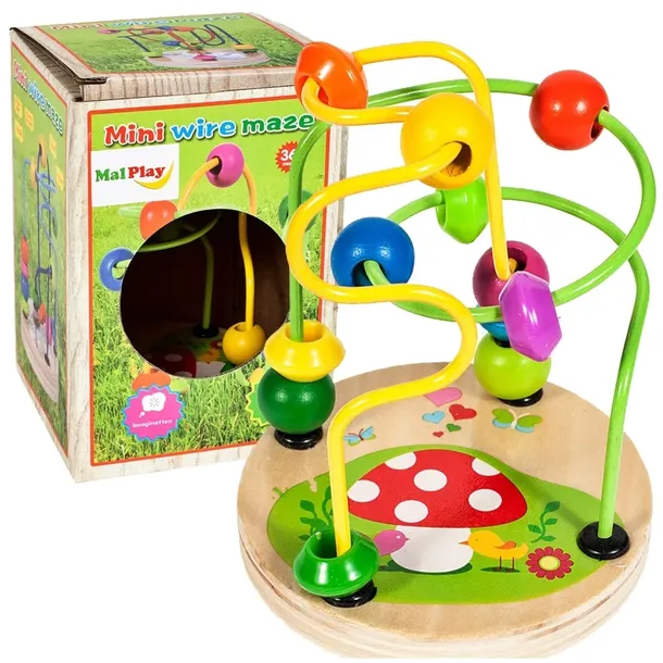 Drewniana przekładanka labirynt ćwiczy zręczność, oraz pomaga w poznawaniu kolorów.