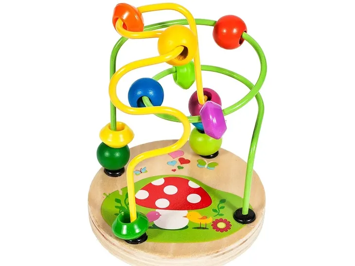 Dzięki starannemu przekładaniu koralików dziecko ćwiczy koncentrację oraz koordynację wzrokowo-ruchową.