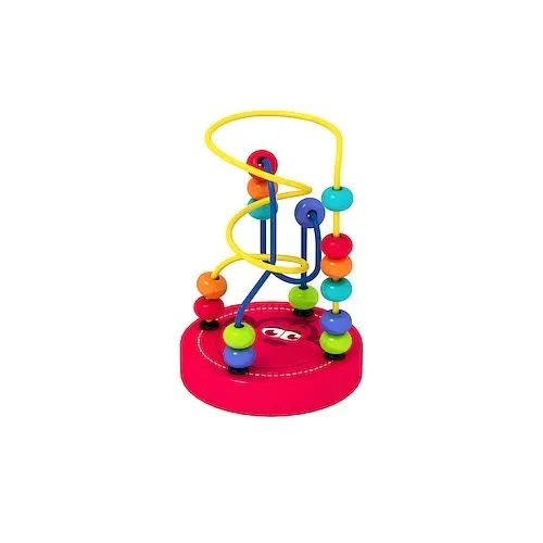 Labirynt z Małpką to drewniana zabawka, która rozwija sprawne rączki, koordynację wzrokowo-ruchową i wyobraźnię przestrzenną.Żywe kolory zabawki, potrafią na długo zająć uwagę dziecka. Zabawka wykonana jest z drewna oraz metalowych pręcików, na których zamocowano 14 kolorowych koralików. Pręciki tworzą 2 oddzielne tory labiryntu.Zabawa polega na przesuwaniu koralików po pręciku w górę i w dół. Żywe kolory dodatkowo zachęcą dziecko do zabawy.Wysokość 11 cm, średnica 9 cm