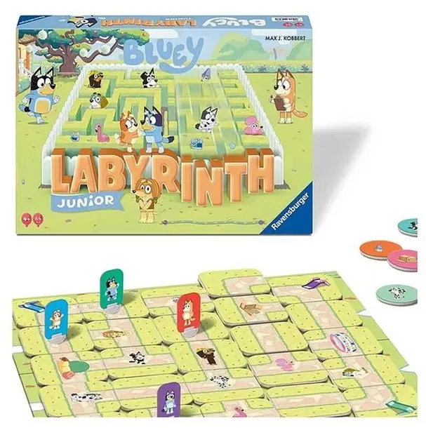 „Labyrinth Junior. Bluey” to uproszczona wersja kultowej gry „Labyrinth”, stworzona z myślą o najmłodszych graczach. Tym razem dzieci przenoszą się do świata Bluey – uroczej postaci z popularnej kreskówki. Gra rozwija orientację przestrzenną, planowanie oraz uczy logicznego myślenia w przyjaznej, kolorowej formie. Korzyści edukacyjne: • rozwijanie orientacji przestrzennej i wyobraźni przestrzennej, • ćwiczenie logicznego myślenia i przewidywania ruchów, • nauka cierpliwości i zasad fair play, • wspieranie rozwoju umiejętności społecznych. Zawartość opakowania: • plansza do gry, • 17 kwadratowych płytek labiryntu, • 12 żetonów z postaciami, • 4 pionki graczy, • instrukcja.