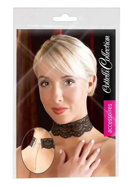 Zamień swoje spojrzenia w zmysłowe akcenty dzięki temu koronkowemu naszyjnikowi. Jego delikatna czarna koronka w połączeniu z łańcuszkami tworzą niepowtarzalny design, który z pewnością przyciągnie uwagę.