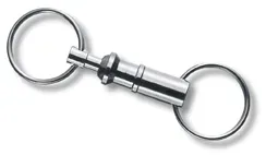 Niklowany łącznik z dwoma kółkami do kluczy o średnicy 25 mm.