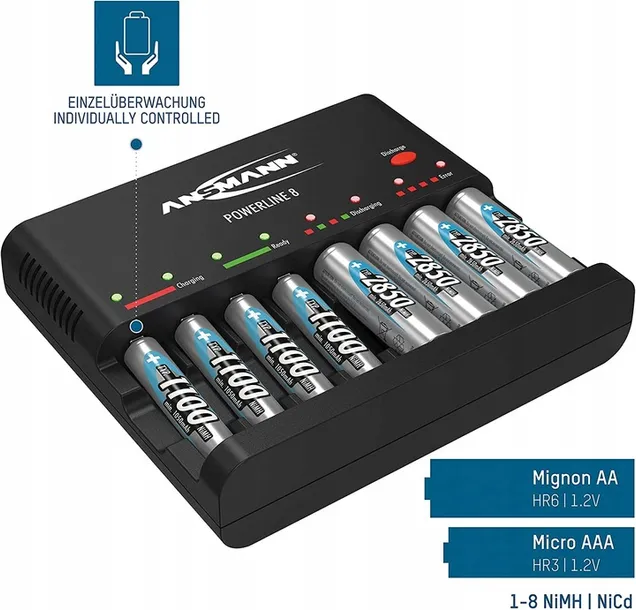 - SZYBKIE ŁADOWANIE: Stacja ładująca na 1-8 akumulatorów AA i mini AAA to idealne akcesorium w podróży.