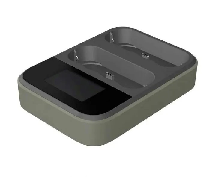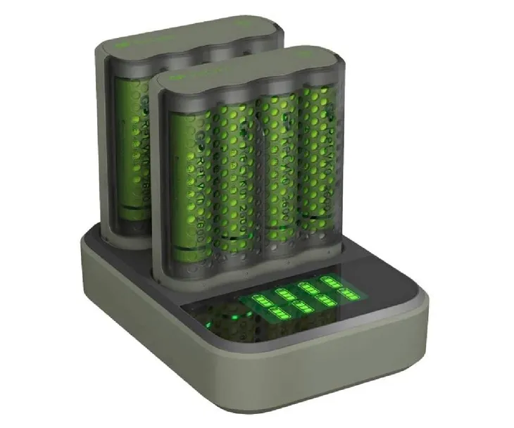 Wyjątkowa, zajmująca niewiele miejsca konstrukcja stacji dokującej utrzymuje ładowarkę ReCyko M451 lub P461 w pozycji pionowej. Jest zasilana przez złącze micro USB, dzięki czemu idealnie nadaje się do użytku domowego i biurowego. Po podłączeniu ładowarek, wyświetlacz LCD na stacji dokującej pokazuje stan naładowania każdego z akumulatorów, a także ich kondycję, przypominając o konieczności wymiany zużytych egzemplarzy.