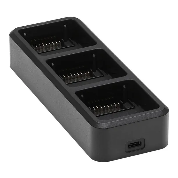 Hub ładowania DJI Mavic 3 Enterprise zasilany z przenośnej ładowarki 100W lub ładowarki samochodowej, umożliwia ładowanie do trzech akumulatorów, w kolejności od najbardziej naładowanego do najmniej naładowanego, co znacznie zwiększa efektywność ładowania.