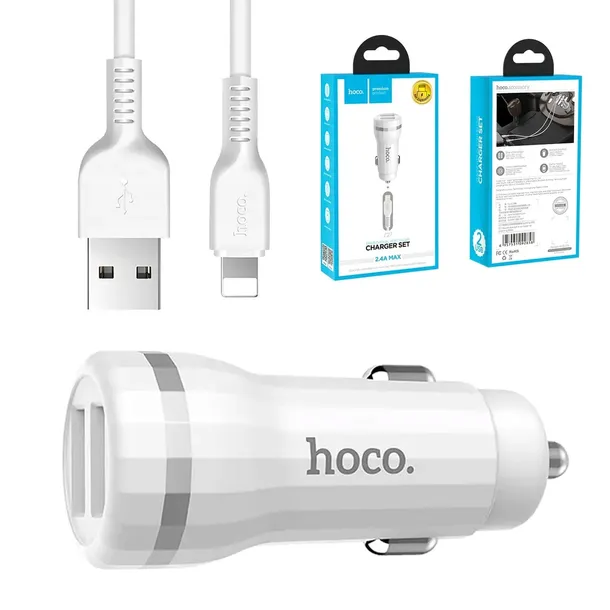 ŁADOWARKA SAMOCHOD 2xUSB+kabel LIGHTNING Z27 BIAŁA