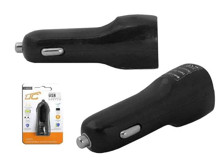 A Najwyższej jakości ładowarka samochodowa USB, której nie może zabraknąć w samochodzie. Jadąc autem, zawsze jest problem z podłączeniem urządzeń zasilanych kablem USB np. telefonu. Rozwiązaniem tego problemu jest dwu portowa ładowarka renomowanej marki LTC. Korzystając z tego urządzenia bez problemu można naładować telefon, aparat fotograficzny czy inne dowolne urządzenie zasilane z gniazda USB.